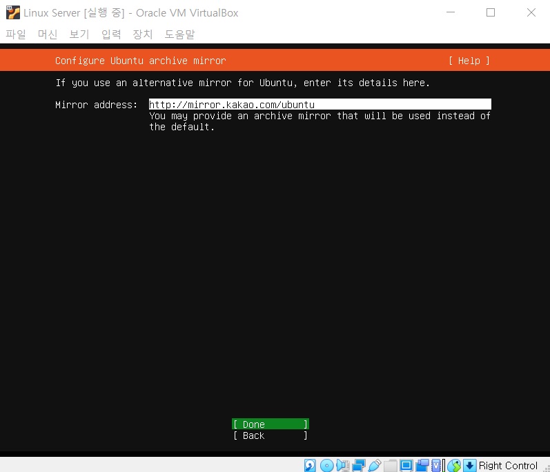 Mirror addres는 우분투 관련 패키지를 받을 때 쓰이는데,