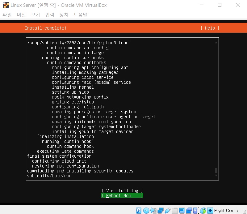 설치 후에는 Reboot를 하여 다시 시작해줍니다.