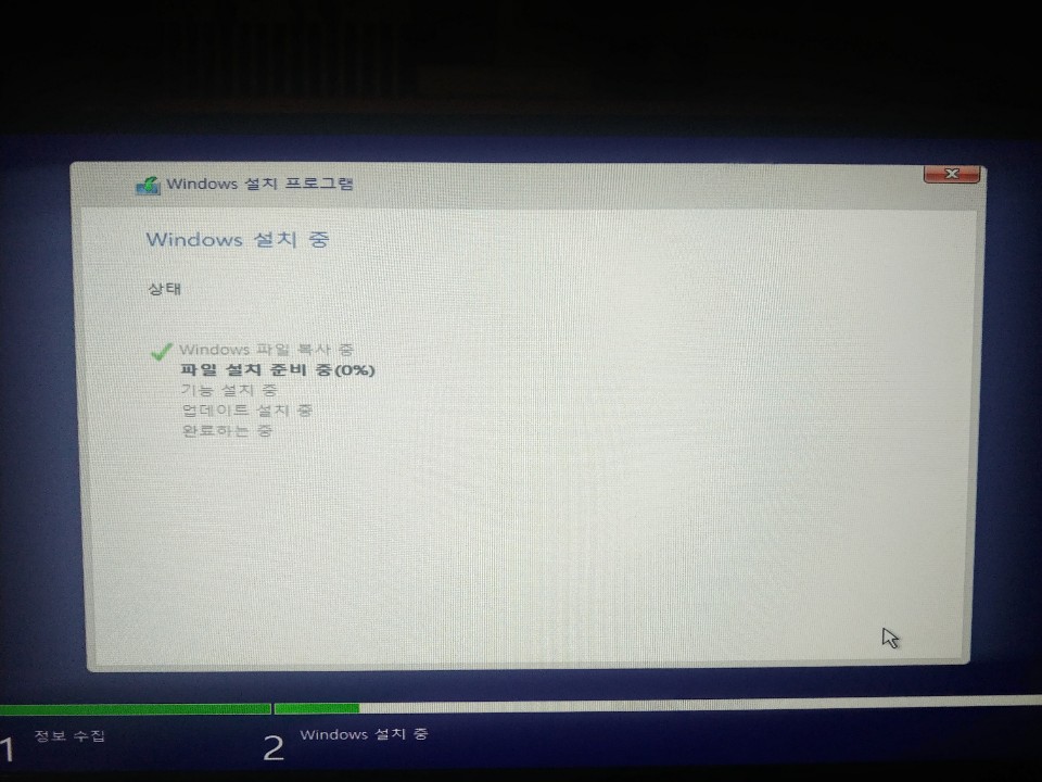 이제 Windows를 설치를 하고 있습니다.